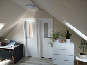 A ház eredetileg 1990-ben épült , 2023-ban kialakításra került a tetőtérből egy újabb szint , így lett belső 2 szintes.