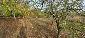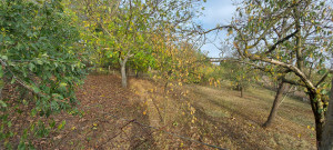A telken gyümölcsfák, fúrt kút és egy faházas szerszámtároló található.