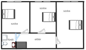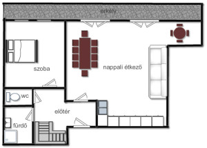 Nappali étkező konyha egyben, plusz egy hálószoba fürdőszoba és külön wc